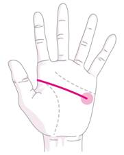 知能線が第二火星丘方面に横に向かうタイプは、「理想より現実」のタイプで現実的な考え方が強く、堅実な生き方をする人です。自制心や責任感が強くとても真面目な人で、やや神経質で頑固な面もありますが、何事もきっちりしている人です。綿密な計画を得意とし、数字に強く金銭感覚にも優れています。