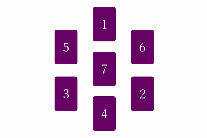 上記の展開方法が、ヘキサグラムスプレッドです。